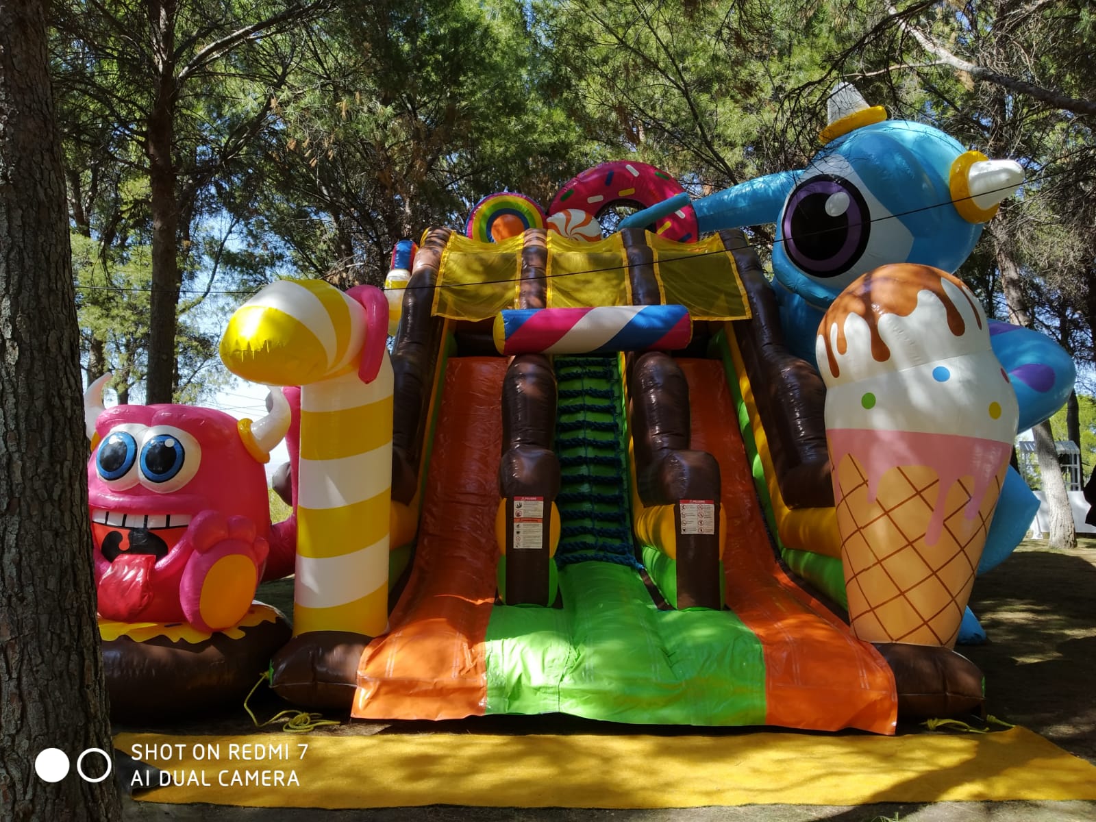 Disponemos de una amplia variedad de hinchables y estructuras de gran formato para dinamizar fiestas locales, jornadas deportivas y eventos familiares.